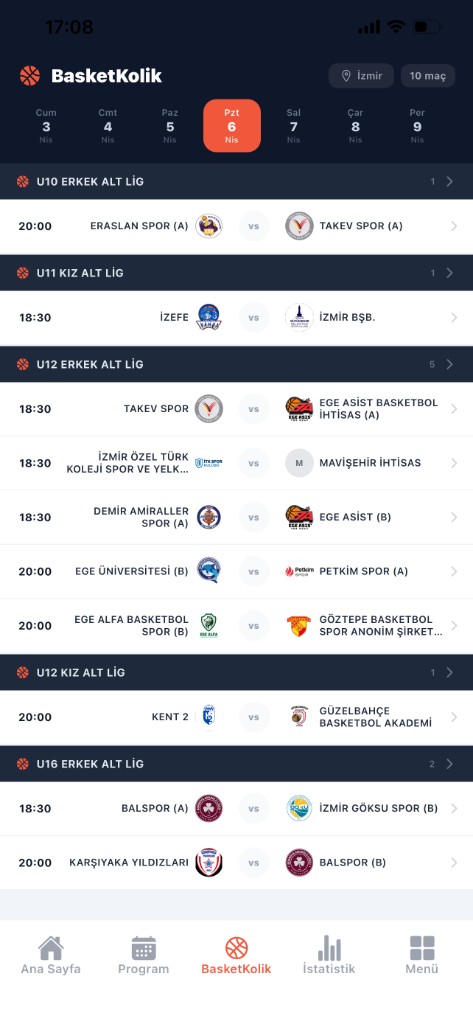 Basketbol kulübünüzü arayıp bağlayın. Fikstür otomatik gelsin.